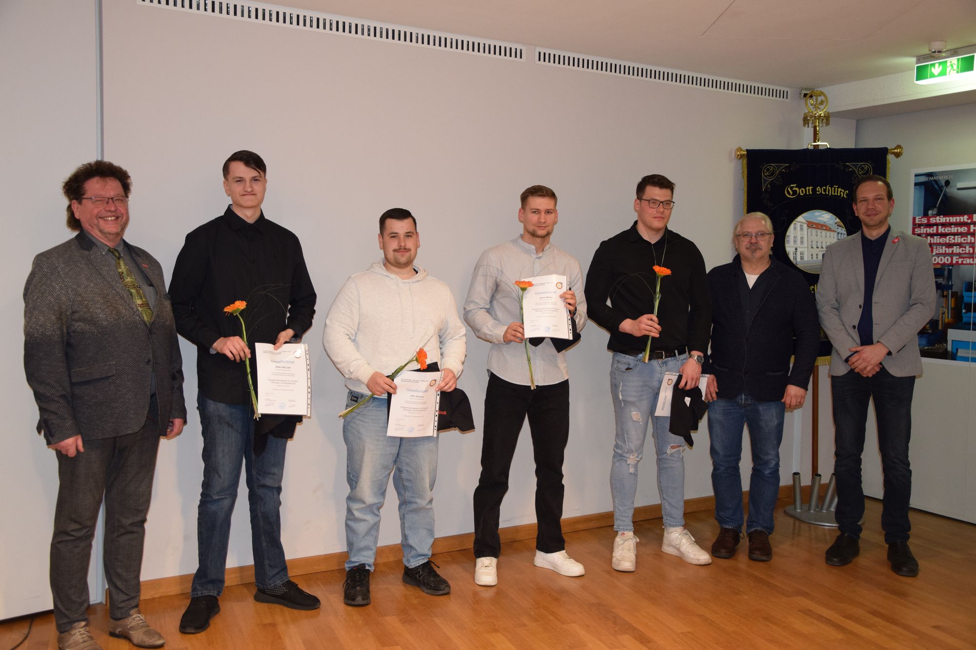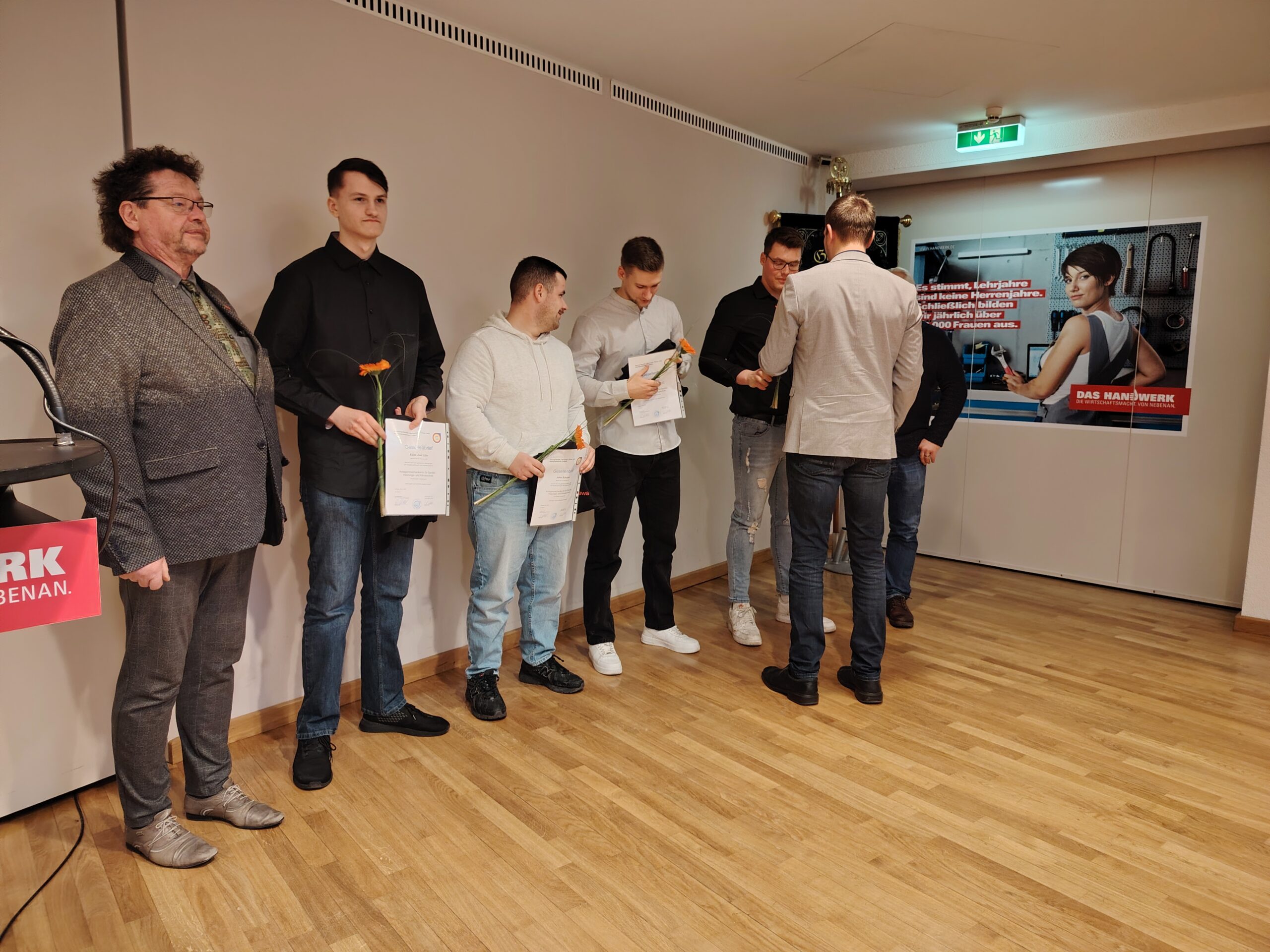 Am 03.03.2026 fand im Meistersaal der Handwerkskammer Cottbus die feierliche Freisprechung für die Anlagenmechaniker SHK sowie für die den Metallbauer statt. Nach den Grußworten durch den Leiter des BTZ-Herrn Hendrik Schulz und der Festrede des Kreishandwerksmeisters Herrn Guntram Bialas wurden die Gesellenbriefe übergeben.